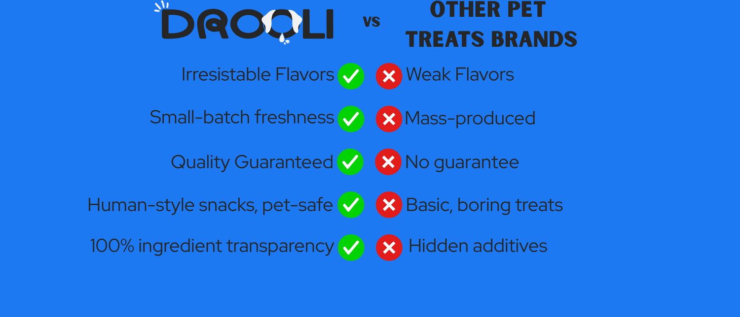 At Drooli, we believe pets deserve better. Better ingredients, better taste, and better care. That’s why we turned the snacks we love most into healthy, pet-safe treats made from 100% natural ingredients.